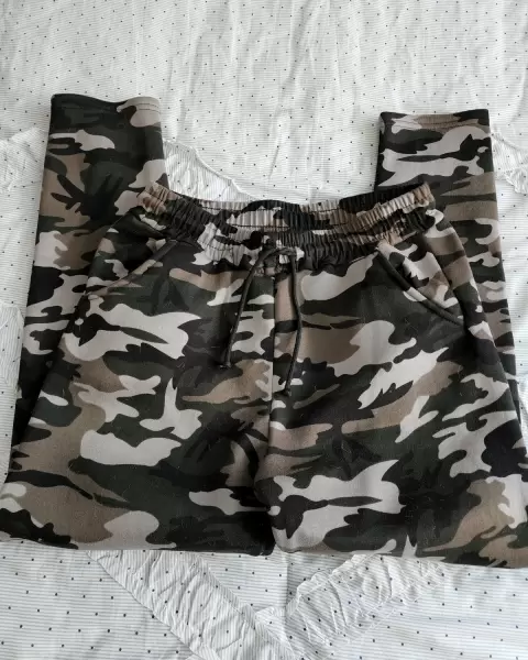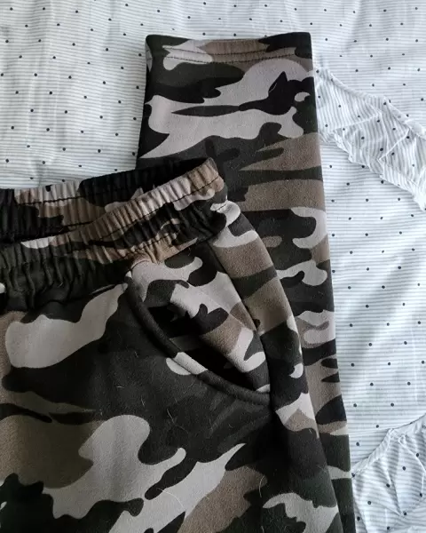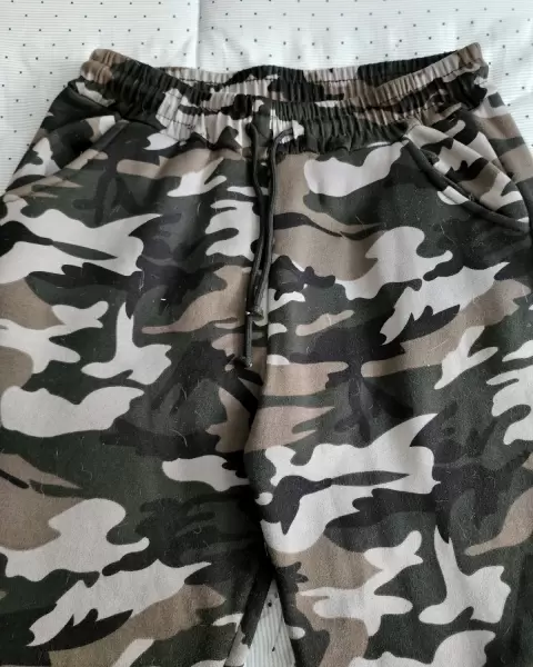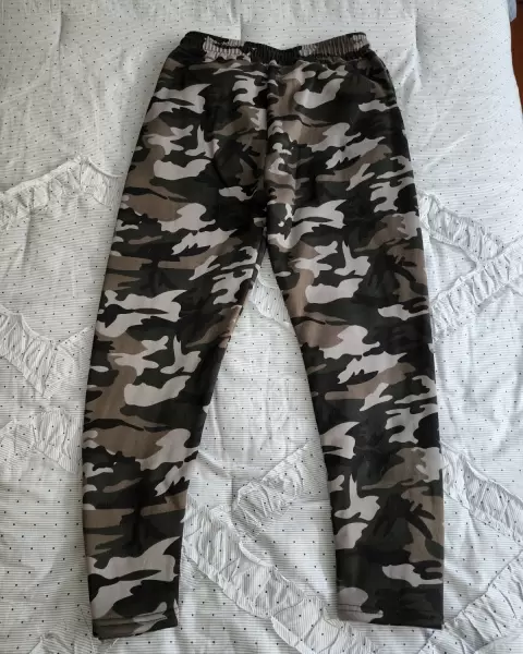 Pants tipo militar, afelpado por dentro, muy calientito, con bolsillos frontales, resorte y cinta para amarrar en la cintura, entubadosExcelentes condiciones