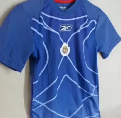 Playera azul con blanco del Guadalajara, es para niño, en el pecho trae el escudo del equipo y en la espalda trae el número 2, tiene mangas cortas, el número de atrás está un poco desgastado, único detalle la marca es Reebok y la talla es 6.