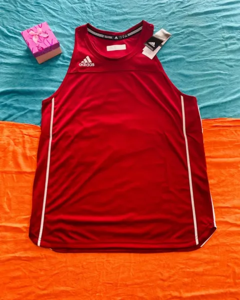 Hermosa y original playera deportiva de la marca ADIDAS, color vino, detalles en color blanco, lista para estrenar en talla M.