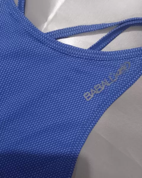 Playera Deportiva azul Babalú, muy coqueta que te hará verte increíble y comoda para tus actividades deportivas. La medida del busto es de 38 centímetros, de axila axila.