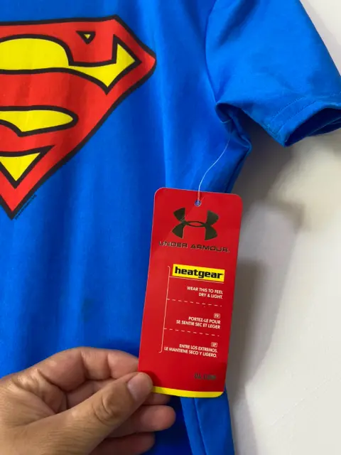 Hermosa playera deportiva para niño, Superman, Under Armour, talla G (14-16) nueva, con etiqueta, ningún detalle, envío inmediato