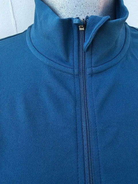 Sudadera Azul Deportiva. Sudadera Azul deportiva con medio cierre, decorado en líneas en la parte inferior y en la manga orificio para dedo pulgar