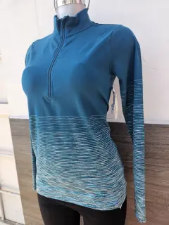 Sudadera Azul deportiva con medio cierre, decorado en líneas en la parte inferior y en la manga orificio para dedo pulgar