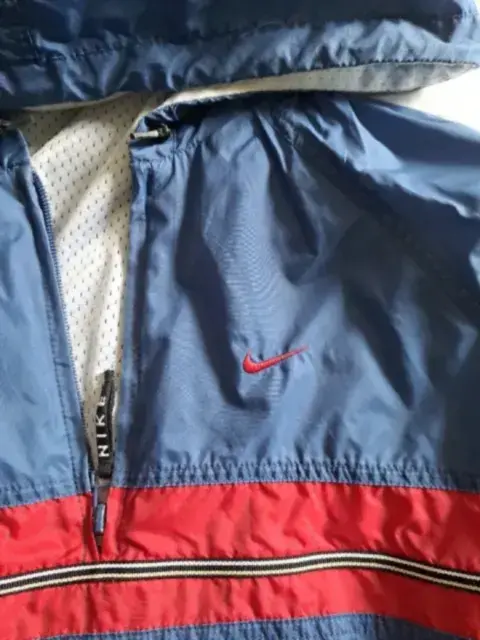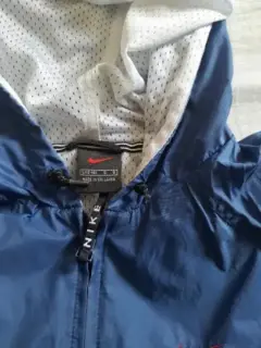 Sudadera unisex para correr marca Nike, color azul con gorra, tiene ajuste de velcro en las mangas y cuenta con ajustador de agujeta en la parte de abajo, por dentro tiene material térmico que permite r la respiración para el sudor.
