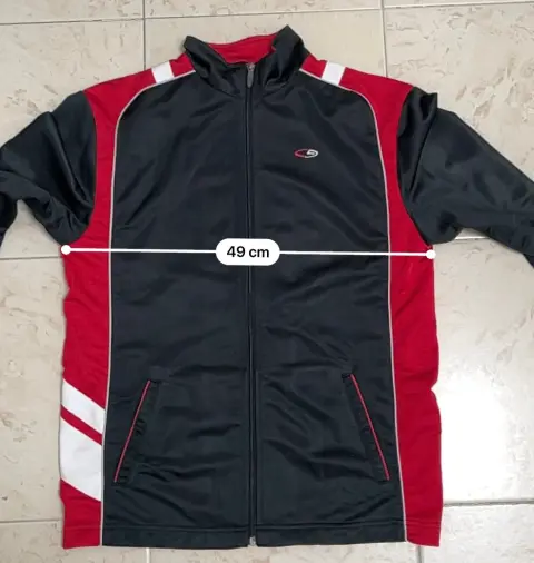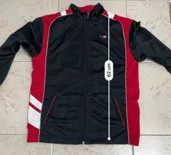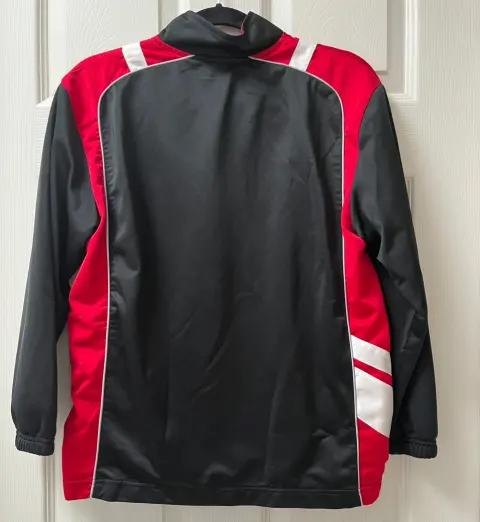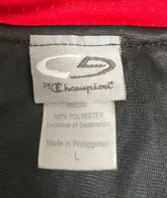 Sudadera Unisex color negro con rojo, talla L, material 100% Poliéster; sin detalles, marca champions