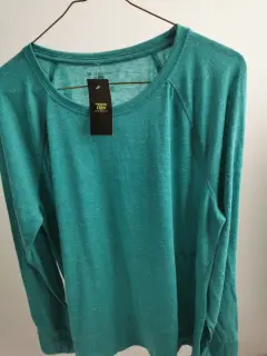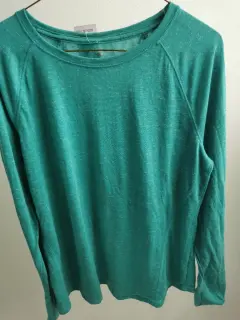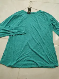 Suéter corte sport delgado y fresco. Color turquesa, es una blusa un poco holgada, con orificio en mangas para meter los pulgares y que no estorbe nada. Medidas. largo: 70cm de la parte de atrás y 62cm de adelante. Ancho (axila a axila): 51cm. Largo de la manga: 75cm empezando desde la costura del cuello. Cualquier duda estoy a sus ordenes 💞
