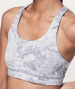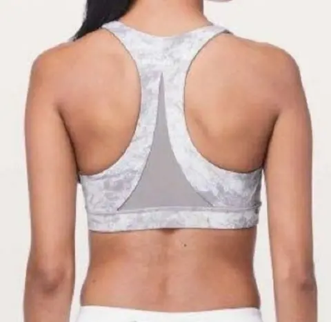 Sujetador Lululemon. Sujetador vigorizante, Serigrafía plateada blanca alpina de mármol lavado Talla 4 Usado en excelente condiciones