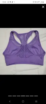 Top 🟣. Top Morado: Escote en V, tela transparente al frente y en la espalda.
