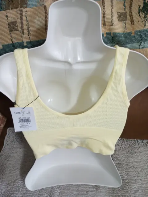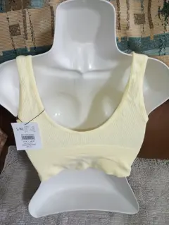 Bonito top amarillo, ideal para el ejercicio, hecho de tela respirable, que estira bastante, cuenta con copas preformadas, super cómoda ☺️