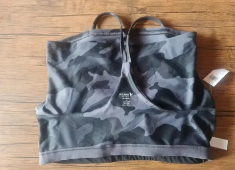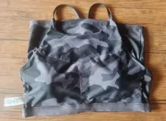 Top deportivo. Top deportivo con estampado de camuflaje, completamente nuevo, talla LG, color gris.