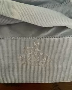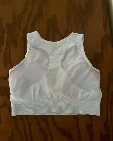 Top deportivo con copas color azul cielo, súper cómodo y con corte halter. Transparencia en la espalda. Dice talla M pero queda también a S.