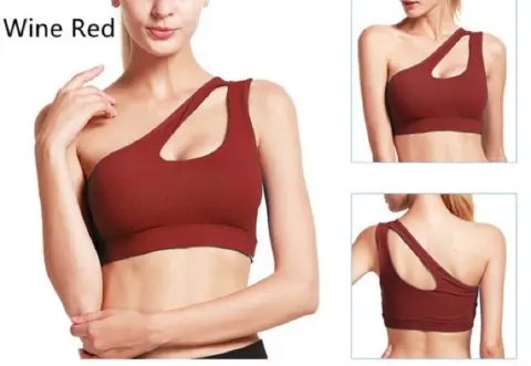 Hecho de tela muy elástica, este sostén deportivo es de grosor medio, suave y cómodo, de ajuste ceñido, resistente a la decoloración, diseño de un solo hombro para combinar, con almohadillas en el busto. Talla S Largo 28.5cm, Busto 35.5cm Excelente para 30A 30B 30C 32A 32B Nuevo sin etiqueta