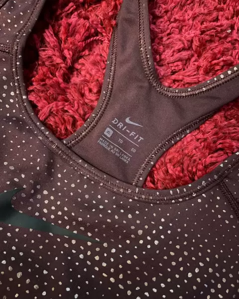Top Sport Nike. Top deportivo NIKE con detalles de destellos dorados, en tono vino tinto y elástico, sin defectos 🤎