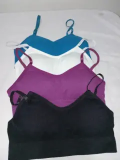 Tops deportivos talla Ch.. Llévate 4 tops deportivos. Con esponja protectora, que se puede quitar y poner, broches y tirantes ajustables.