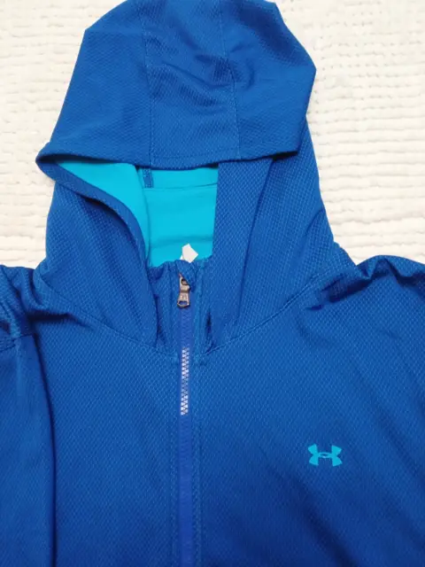 Under Armour Cold Gear chaqueta Dama.. Under Armour cold gear chaqueta ajustada con cremallera, en dos tonos azul talla XL (extra larga). Tecnología UA Performance una vista que te mantiene cálido,seco y ligero, nueva sin etiquetas.Material: 94% poliéster y 6% elastanoMedidas: 72 cm de largo, 90 cm de ancho espalda -pecho, 100 cm ancho en cintura, 70 cm largo en mangas.