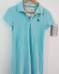 Vestido polo Abercrombie. Vestido polo azul turqueza con botones frontales y pequeñas aberturas a los costados. Cómodo, fresco y femenino. Stretch. Talla M. Estética de 90% (una que otra pelusita).