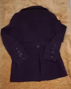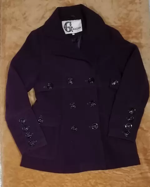 Abrigo de paño, color morado, sólo una puesta, excelente estado.