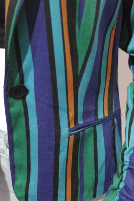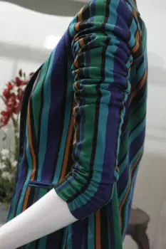 Blazer a Rayas. Otra prenda que encontré en un bazar, pero no me lo probé y no me quedó de los hombros.Dale vida nuevaManga 38 cm de largoEstira un poco