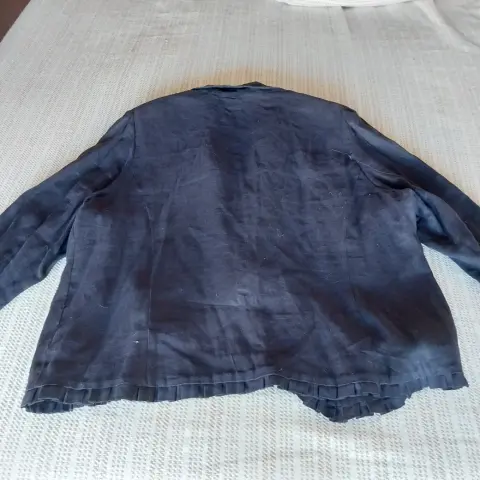 Hermoso blazer o chaqueta abierta sin botones. Solo codos lazos para cerrar. Es azul marino y la tela es lino.