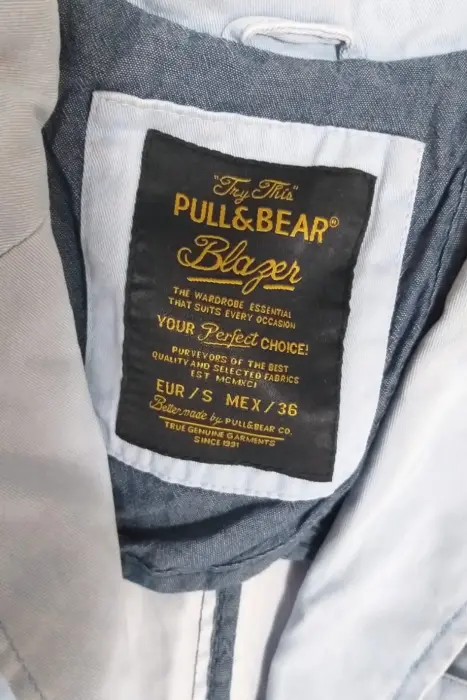 BLAZER AZUL CIELO, apariencia como de mezclilla, material algodón y spandex, es talla S pero también puede quedar a MMedidas:De axila a axila 47cmCintura 45cmLargo 66cm