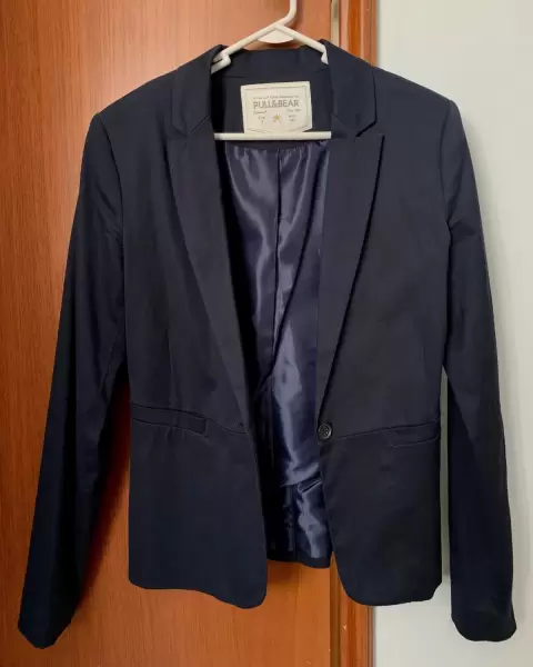 Blazer azul marino ajustado. Saco azul marino tela gruesa, el corte es algo ajustado no oversized. Súper cómodo y fresco. Queda aproximadamente a la cadera.