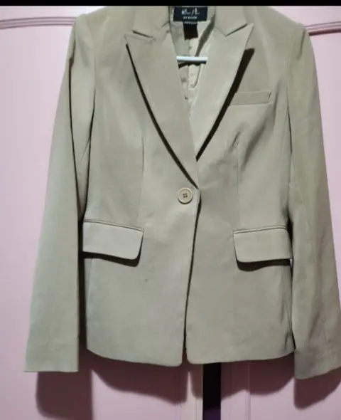 Blazer color beige, trae forro, talla M, solapa, botones, no es holgado, hace figura