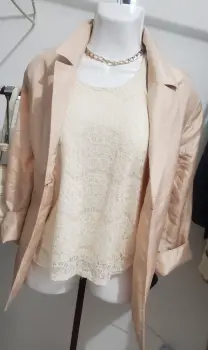 Blazer beige de cuello y solapa