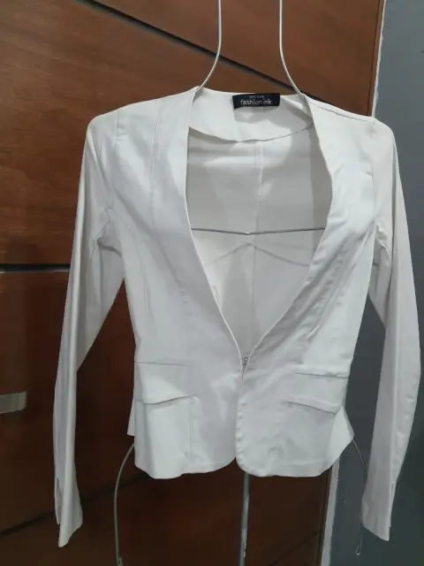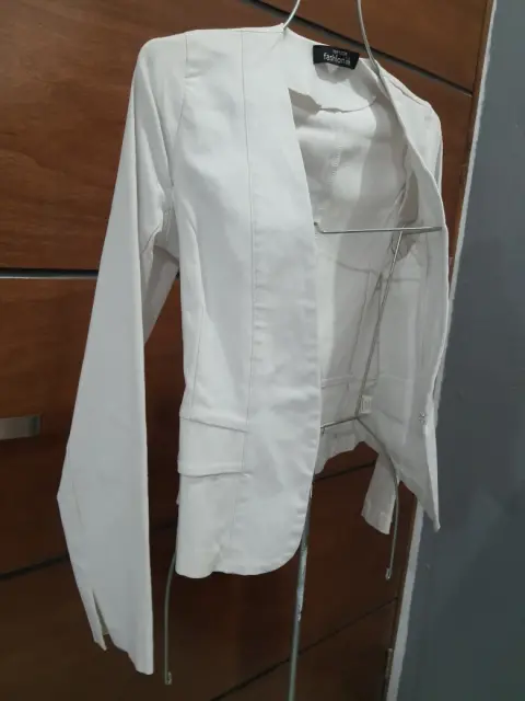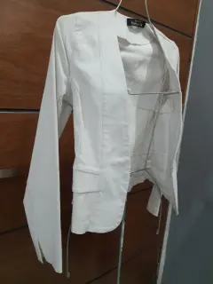 Hermoso blazer blanco en perfecto estado, su tela es elástica y entalla perfecto, no tiene bolsas solo simula, sin detalles ni defectos.