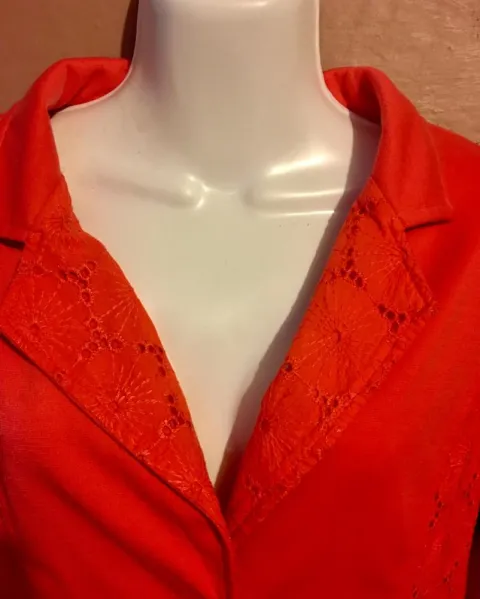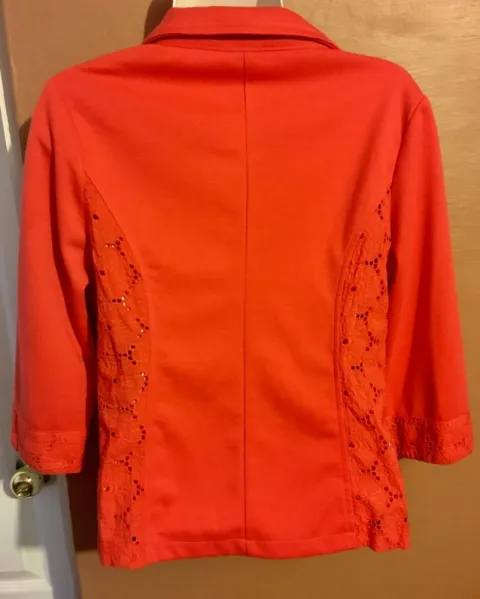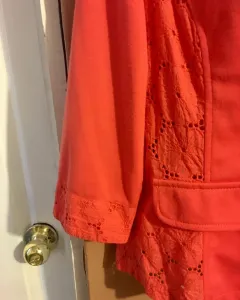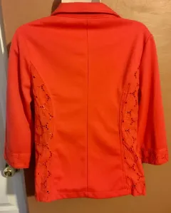Blazer coral. Bonito blazer corto con bordados en brazos y cuello trae dos bolsas simultorias sin detalles tal cual las fotos