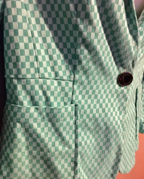 Blazer corto. Bonito blazer cuadros verdes menta sin detalles