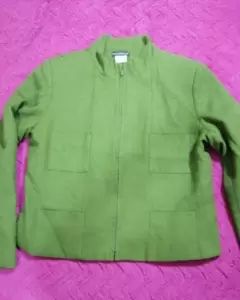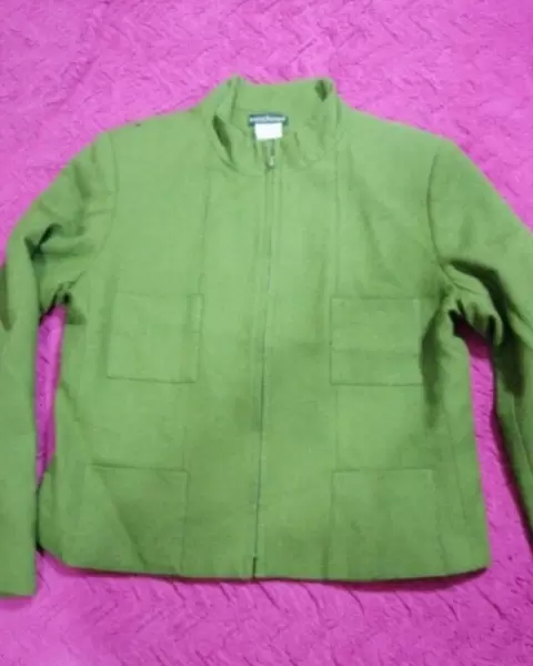 Hermoso blazer corto color verde olivo.. Cuello redondo con cierre y forro x dentro.Tiene bolsitas en la parte de enfrente donde da el pecho y 2 abajo de estas mismasEN Excelente estadoEste hermoso el color