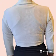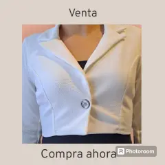 Blazer corto. Blazer blaco corto, con manga de tres cuartos, con tela gruesa y cortes que amoldan.Mide 38cm de largo36 cm de hombros40cm de mangas43cm ancho altura del pecho