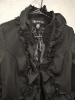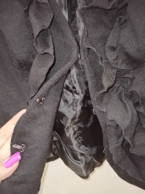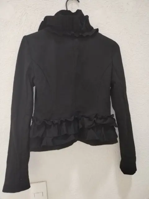 Blazer corto vintage sus solanes en la parte de enfrente lo hacen ver súper elegante en la parte de atrás no hace de súper femenino cuenta con sus broches completos y sin detalles para poderlo cerrar sin ningún problema el forro no tiene ningún detalle no estira nada viene en su talla SIN DETALLES
