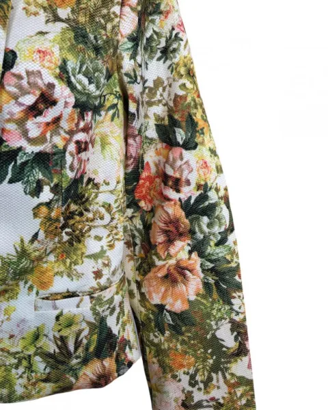 Blazer corto floreado. Un bellísimo blazer floreado con tela en textura, te encantará por que es muy combinable con tonos neutros en zapatos, pantalones y faldas