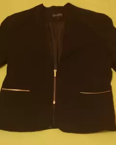Blazer corto color negro, talla L, casual muy cómodo, luce muy bien con mezclilla o ropa de vestir, tiene muy poco uso, está en perfecto estado.