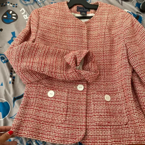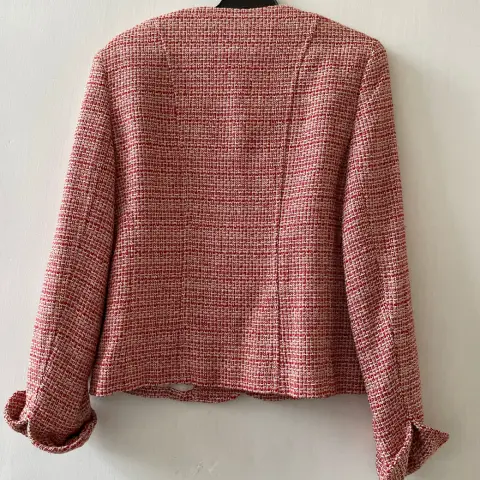 Blazer dama T 4. Saco corto dama, bolsas frontales, pequeñas hombreras para dar forma y forro. Espalda 40 cm, bocamanga 24cm, largo total 54 cm.