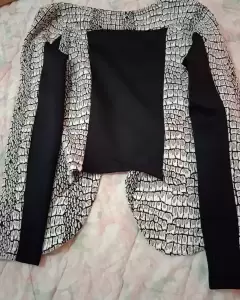 Hermoso saco de animal print tipo serpiente, es ajustado al cuerpo y sin botonadura al frente, se utiliza abierto, abajo de los brazos y por la espalda es negro para acentuar la silueta, es talla CH marca AREA CODE.Se ve muy bonito puesto porque marca la figura y te ves arregladita al mismo tiempo, está nuevo.✔️ Axila a axila 37 cm✔️ Largo por atrás 42 cm✔️ Largo por el frente 57cm