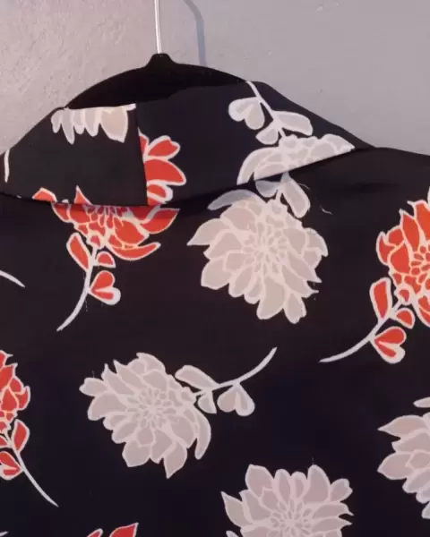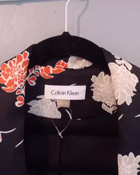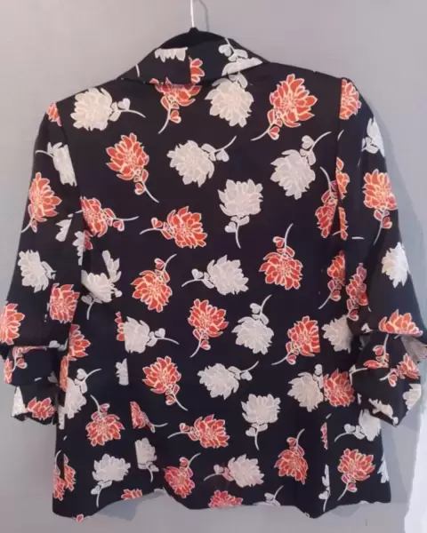 Hermoso blazer de flores, negro, tela tipo satinada, tiene algunos hilos salidos que son imperceptibles , usa 1 vez