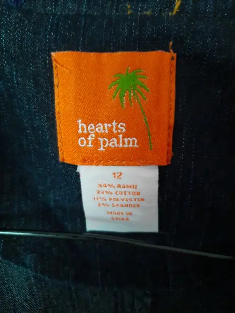 Blazer de mezclilla talla 12 con vivos al frente y mangas color rosa y azul y estoperoles en cuello y bolsas.