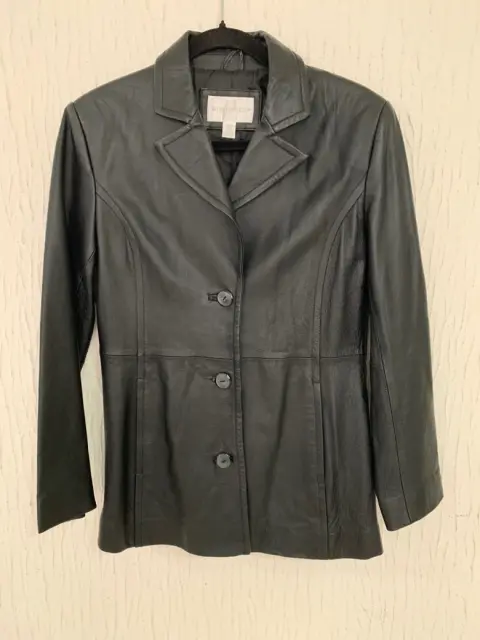 Blazer de 💯 % piel genuina. Chaqueta negra de piel de cerdo de un solo uso, talla chica, está en perfectas condiciones.24.5 de altura, 46 cm del largo de la manga 47 cm cerrada del pecho y tiene de larga 74.5Si no estás segura de tu compra por favor no ofertes, ni retengas la prenda.