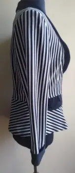 Hermoso blazer en blanco y negro a rayas Forma muy bien la cintura Recomiendo a talla 9 Excelente estado 👍
