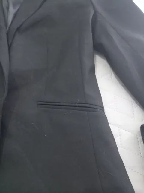 Moderno de solapa delgada, entallado stretch súper básico, talla 6 queda a mediana, excelente calidad, forrado mide de axila a axila 46cm cerrado hombros 38cm largo desde hombro 58cm