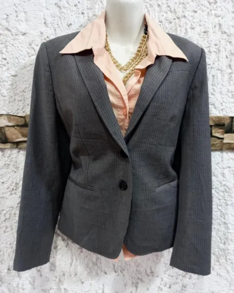 Blazer gris a rayas Ann Taylor. Blazer color gris a rayas, elegante y casual, excelente estado, sin detalles, usado 2 veces, marca Ann Taylor, talla 8PMedidaaHombro-Hombro 40 cmAxila-Axila 48 cmLargo 63 cm