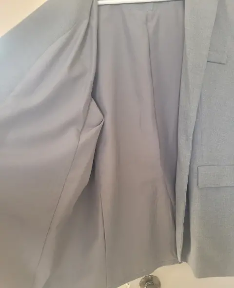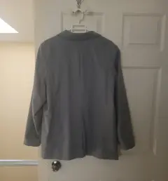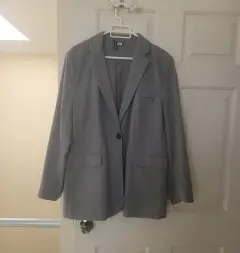 Blazer gris oversized talla L, medidas de axila a axila 60, largo 74