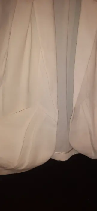 Blazer ligero, sin forro, manga 3/4 talla M, detalle de pliegues en bolsas.
