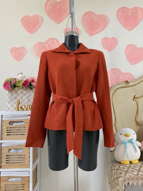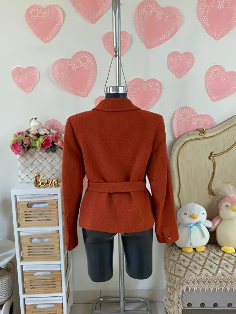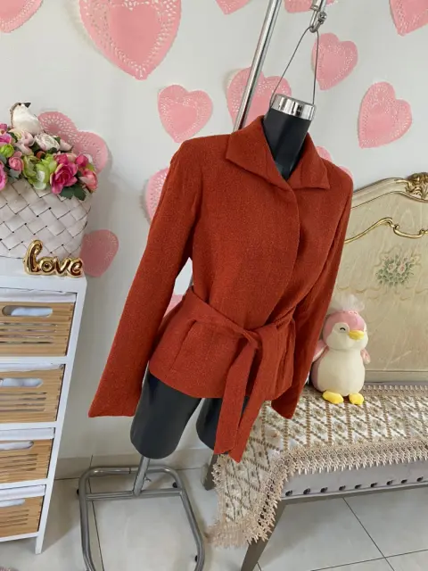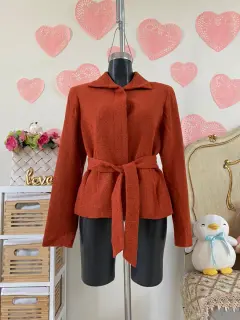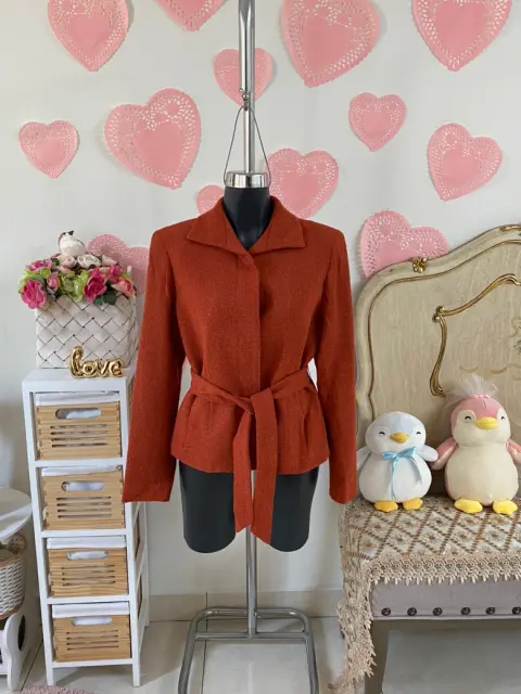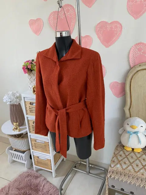 Precioso & como nuevo. Abrigo/blazer naranja texturizado grueso. Forro suavecito. Cinta para ajustar en cintura & marcar súper bien tu silueta. Bolsas laterales funcionales ✅. Talla M. 🧡🔢ꪑꫀᦔιᦔꪖડ:Hombro a hombro 40 cmAxila a axila 49 cmCintura 45 cmLargo 58 cm.♻️ 92% lana, 8% nylon. Forro interior 100% poliéster♻️