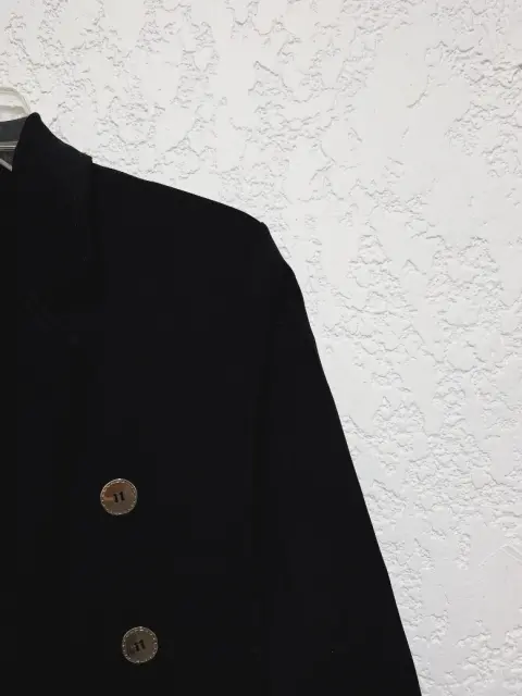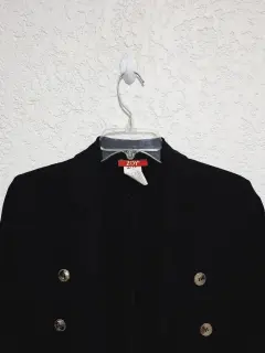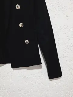 Blazer negro con botones decorativos (no cierra queda abierta), la tela es fresca y estira un poco, es talla 11.Armo paquetes a tu gusto, deja comentario en las prendas que te interesen. 💖