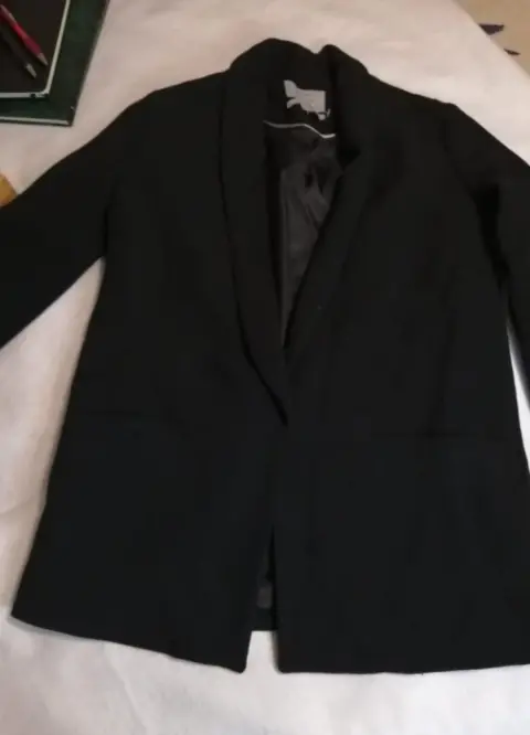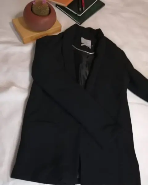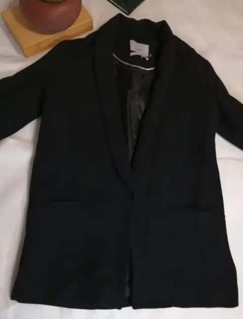 Blazer en color negro de bershka talla xchLargo 67 cm46 cm axila a axila35 cm hombro a hombroManga 60 cmEl blazer está nuevo pero tiene algunos detalles de pequeños hilos que presento en la foto.