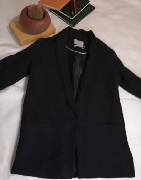 Blazer negro bershka xs. Blazer en color negro de bershka talla xchLargo 67 cm46 cm axila a axila35 cm hombro a hombroManga 60 cmEl blazer está nuevo pero tiene algunos detalles de pequeños hilos que presento en la foto.