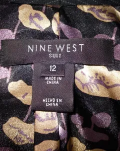 Blazer Nine West. Bonito blazer color negro con rayitas blancas, llega a la cintura ,con un forro en color dorado y morado ,cero detalles